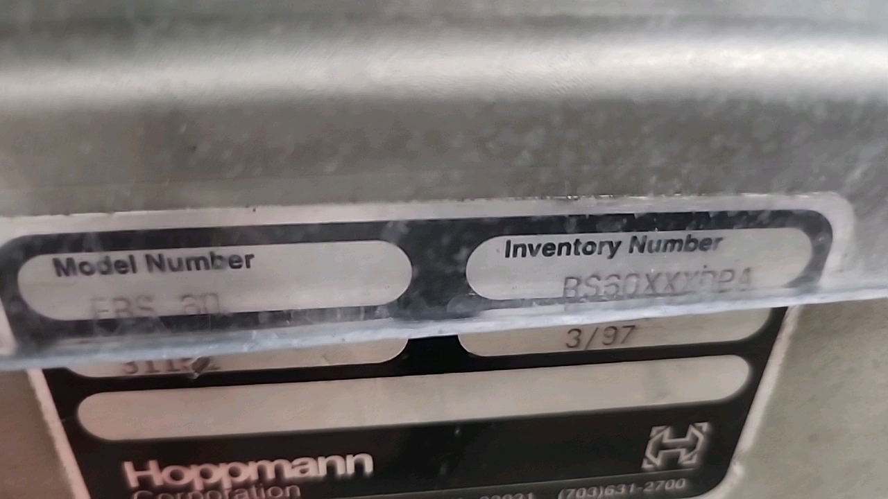 Hoppmann mod. FRS-60 centrifugal bottle descrambler/stand-up, stainless steel, 6 ft. dia., ser. no. 31151 [wall must be removed prior to removal] (Subject to confirmation. The winner will be determined based on the sum of bids on lots 1 to 11 vs bid on bulk lot 12)
