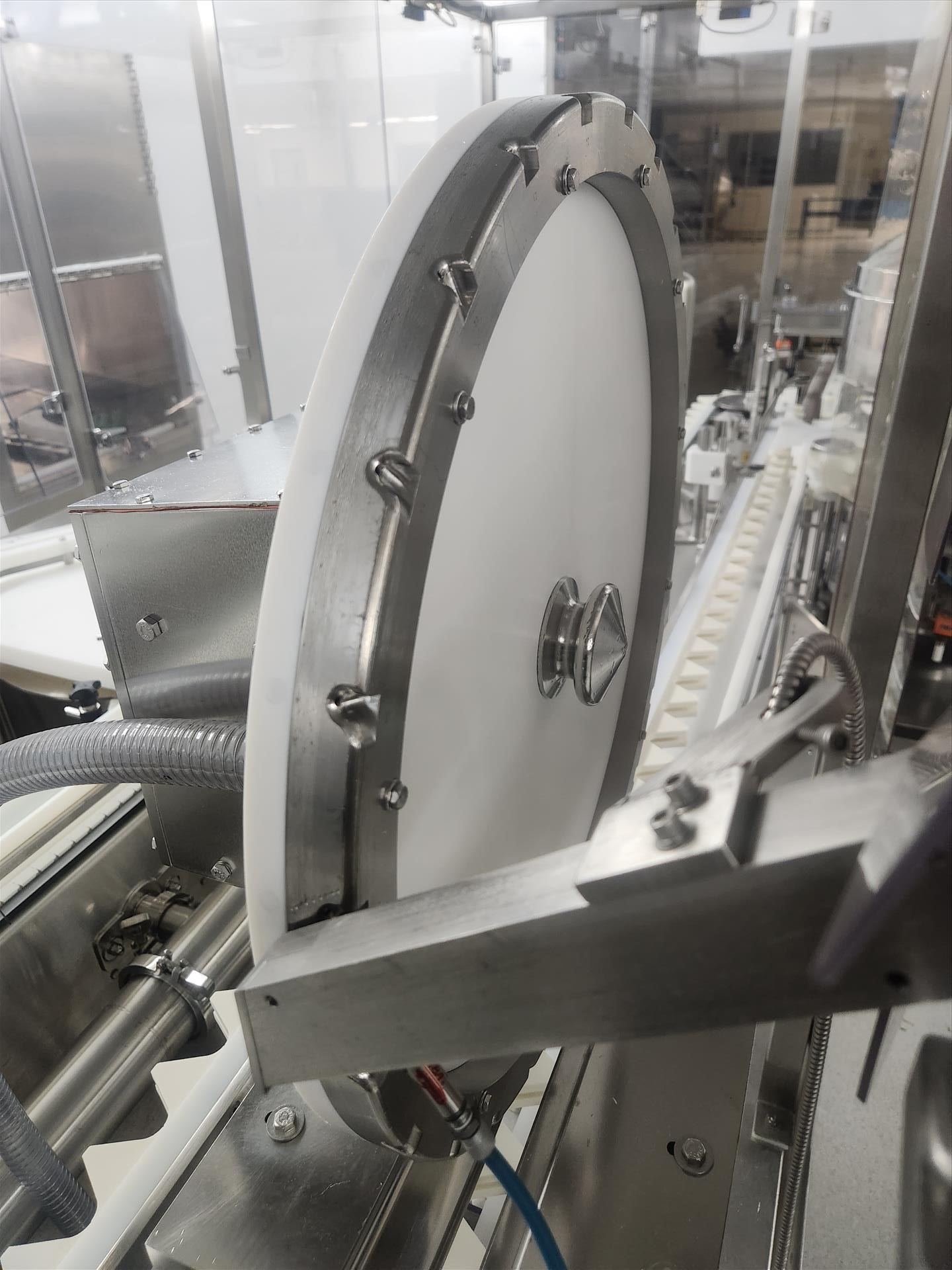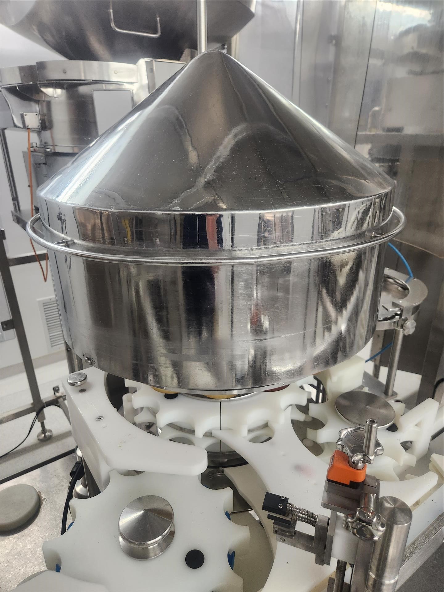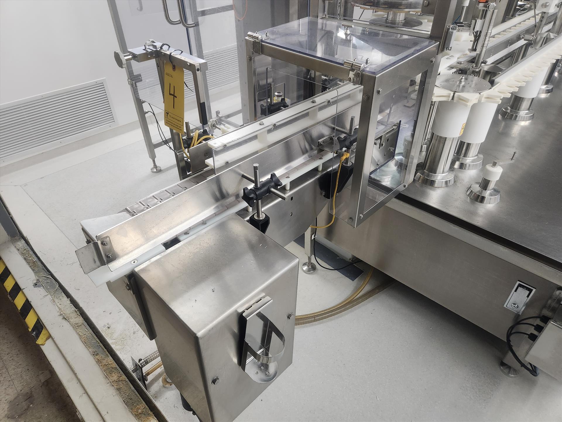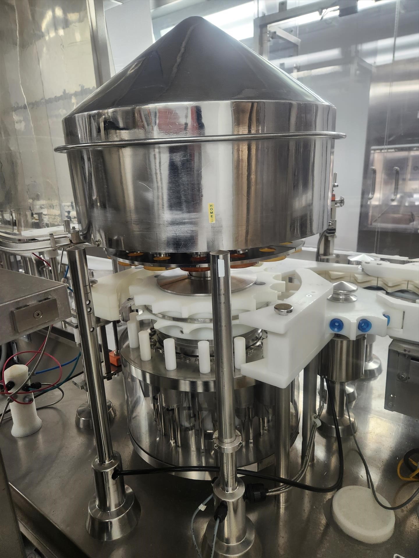 Bosch/TL Systems rotary filler, ADM 48-nozzle, mod. CV/K55JXEPT-935, ser. no. 11043, 27 USG, stainless steel w/ carousel conveyor, plug inserter, 16-head capper, exit conveyor, set-up for 360 ml bottles and EandH flow meter [wall must be removed prior to removal] (Subject to confirmation. The winner will be determined based on the sum of bids on lots 1 to 11 vs bid on bulk lot 12)
