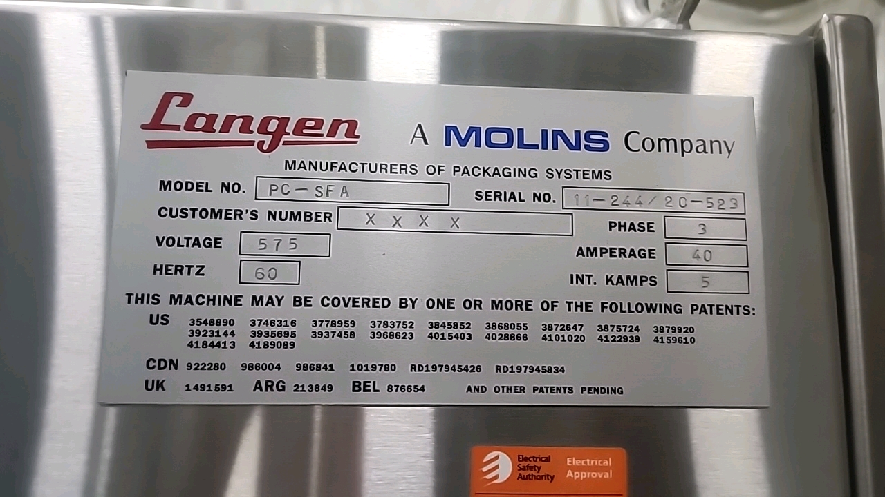 Langen cartoner, mod. PC-SFA, ser. no. 11-244/20-523, w/ PanelView 1000E touch screen control c/w Argus Laetus inspection system, ElectroCam Plus 6000