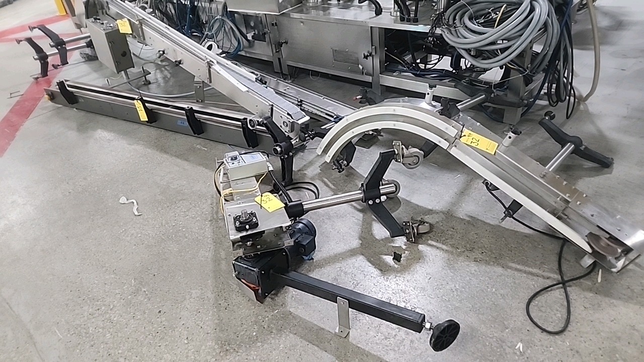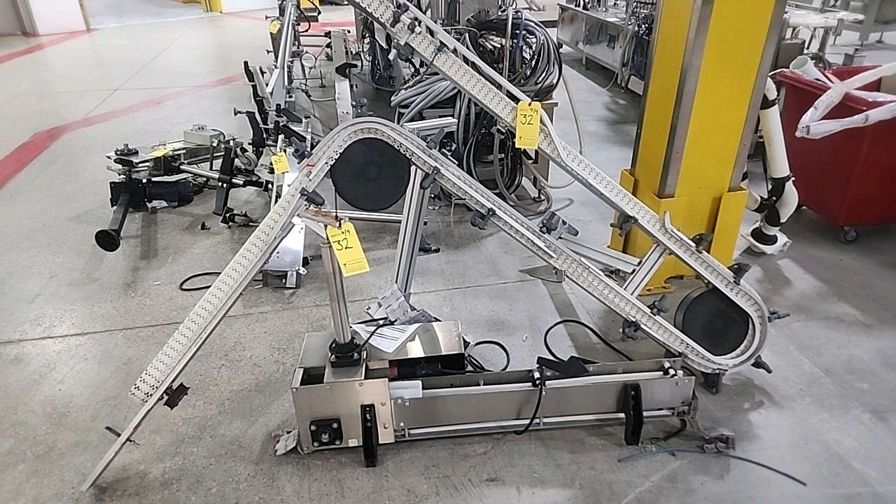 misc. conveyor, slat-top chain, stainless steel, approx. 3 in. x 8 ft., power