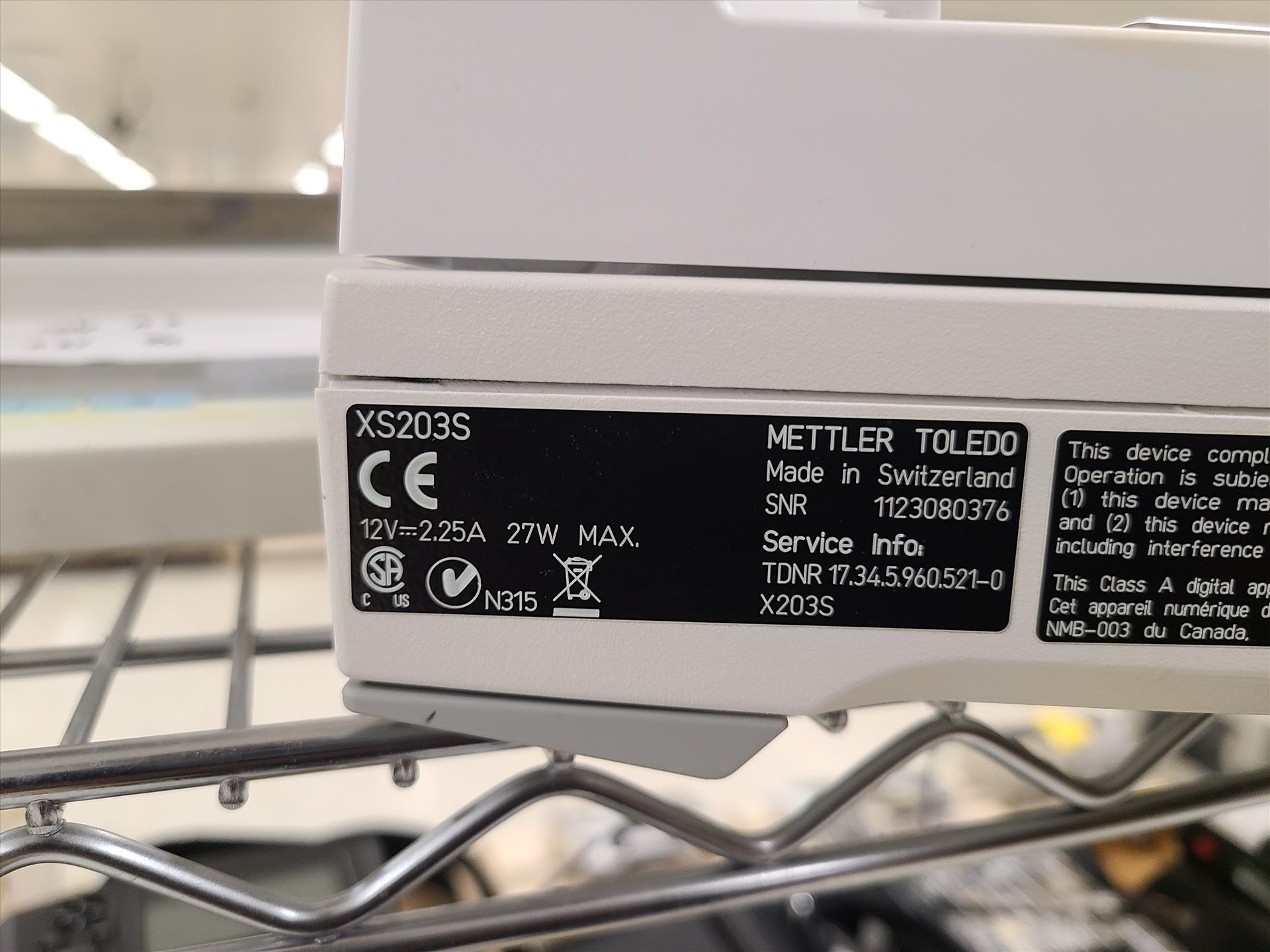 Mettler Toledo toploading balance, mod. XS203S, ser. no. 1123080376