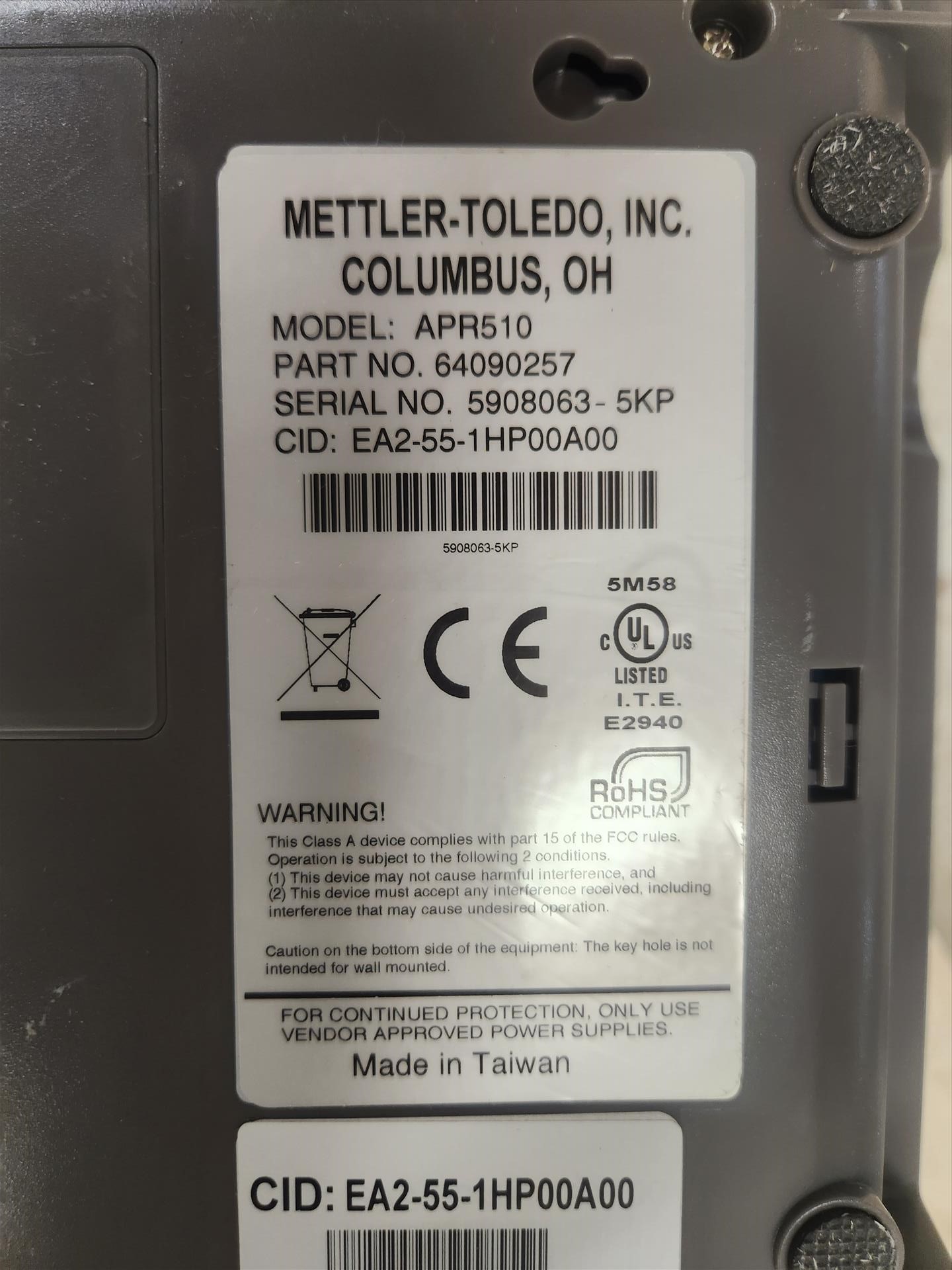 Mettler Toledo printer, mod. APR510 (excluding cords)