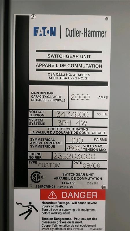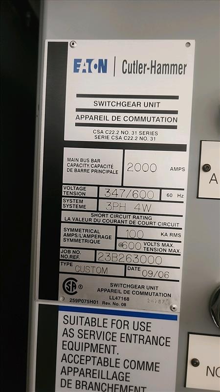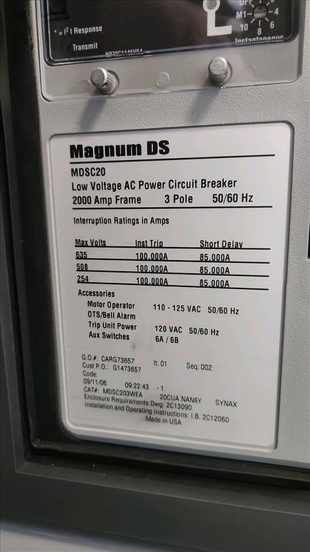 NEW (2) Eaton Cutler-Hammer switchgear, mod. Pow-R-Line C, 600V, 2000A, 60hZ, 3PH, 4W w/ (3) Magnum DS MDSC20 circuit breakers w/ outdoor housing
