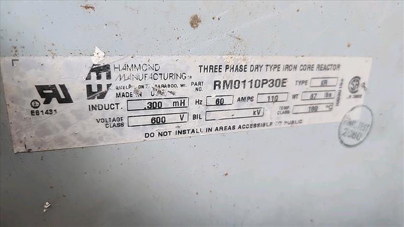 (2) Hammond dry type iron core reactor transformers, mod. RM0110P30E