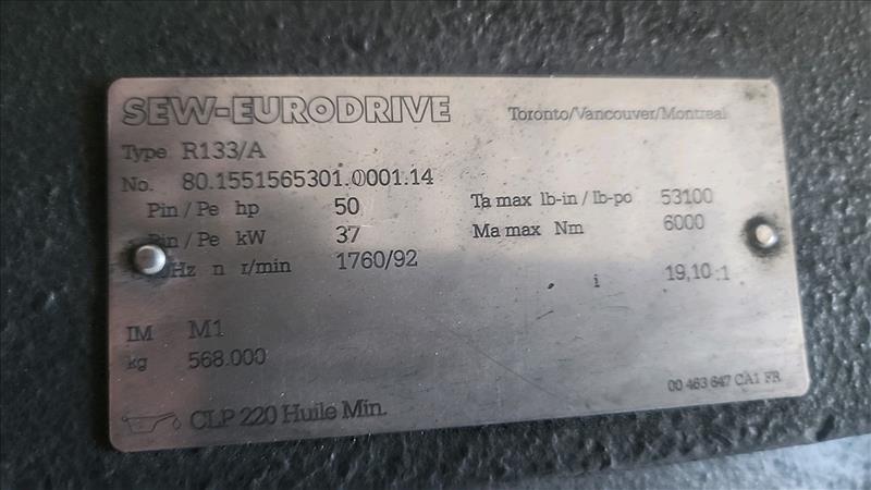 SEW gearbox, mod. R133/A, ser. no. 80.1551565301.001.14, 19.10:1 ratio, 50 hp