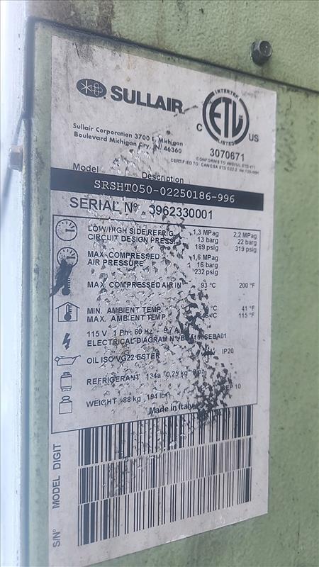 Sullair air dryer, mod. SRSHT050-02250186-996, ser. no. 3962330001
