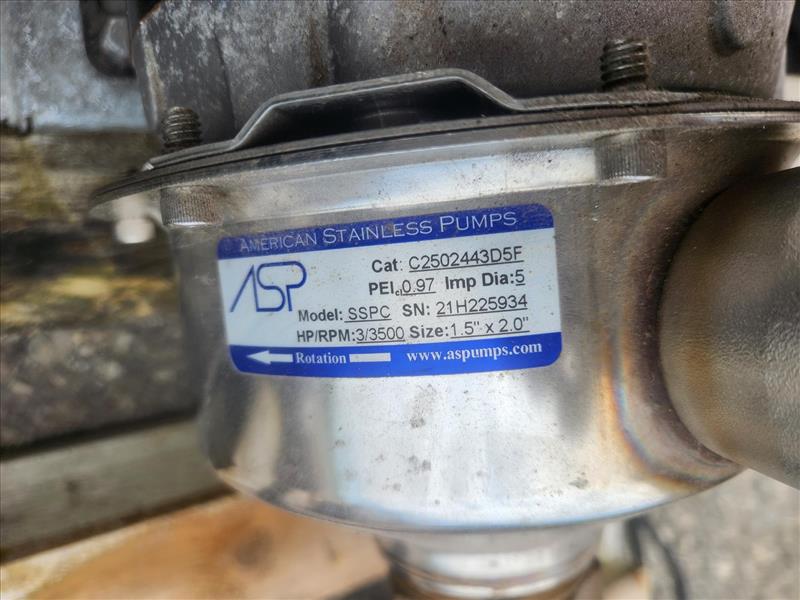 American Stainless Pumps centrifugal pump, mod. SSPC, ser. no. 21H225934, 3 hp, 1.5 in. x 2.0 in.