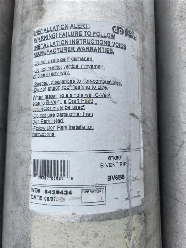(9) 6 in. x 60 in. B-vent pipe, mod. BV6B5