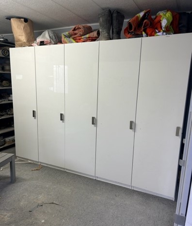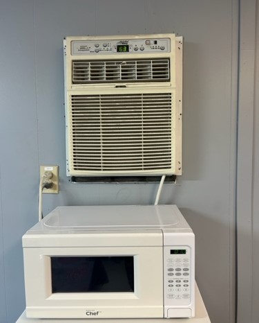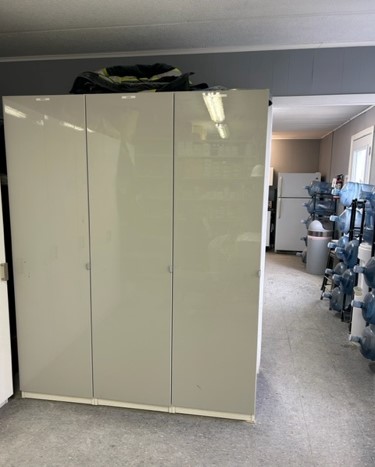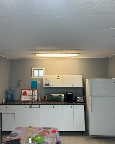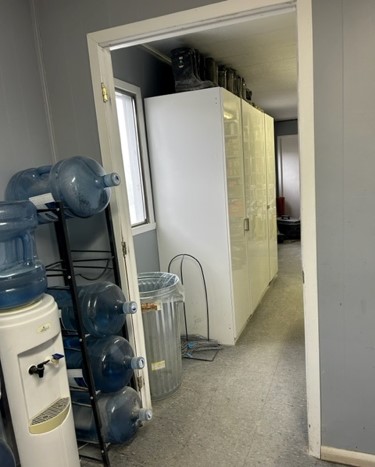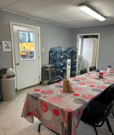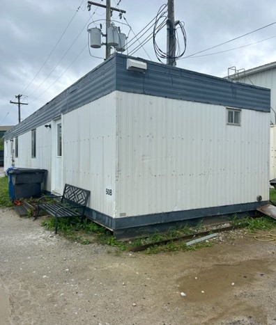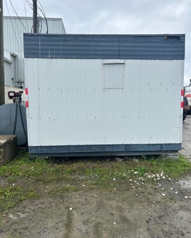 lunch room/trailer approx. 12 ft. wide x 53 ft. long, w/ complete kitchen, locker room, storage racking (no contents) and air conditioning (excluding fuel tank - formerly Lot 101) (Mandatory Rigging Fee: $350)
