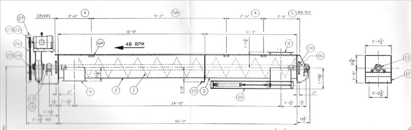 SC-6-Screw Conveyor, approx. 16 in. screw diameter x 16 ft. 3 in. long conveyor, w/dodge bearing, flight spec. 1/4 thick steel (Mandatory Rigging Fee: $550)