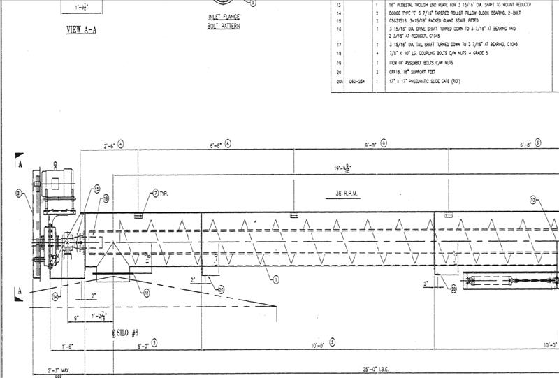 SC-9-Screw Conveyor, approx. 16 in. screw diameter x 25 ft. long conveyor, w/dodge TA3203H25 gearbox, dodge bearing, Epact-HPE 7.5 hp, 600 volt motor, flight spec. 1/4 thick steel (Mandatory Rigging Fee: $550)