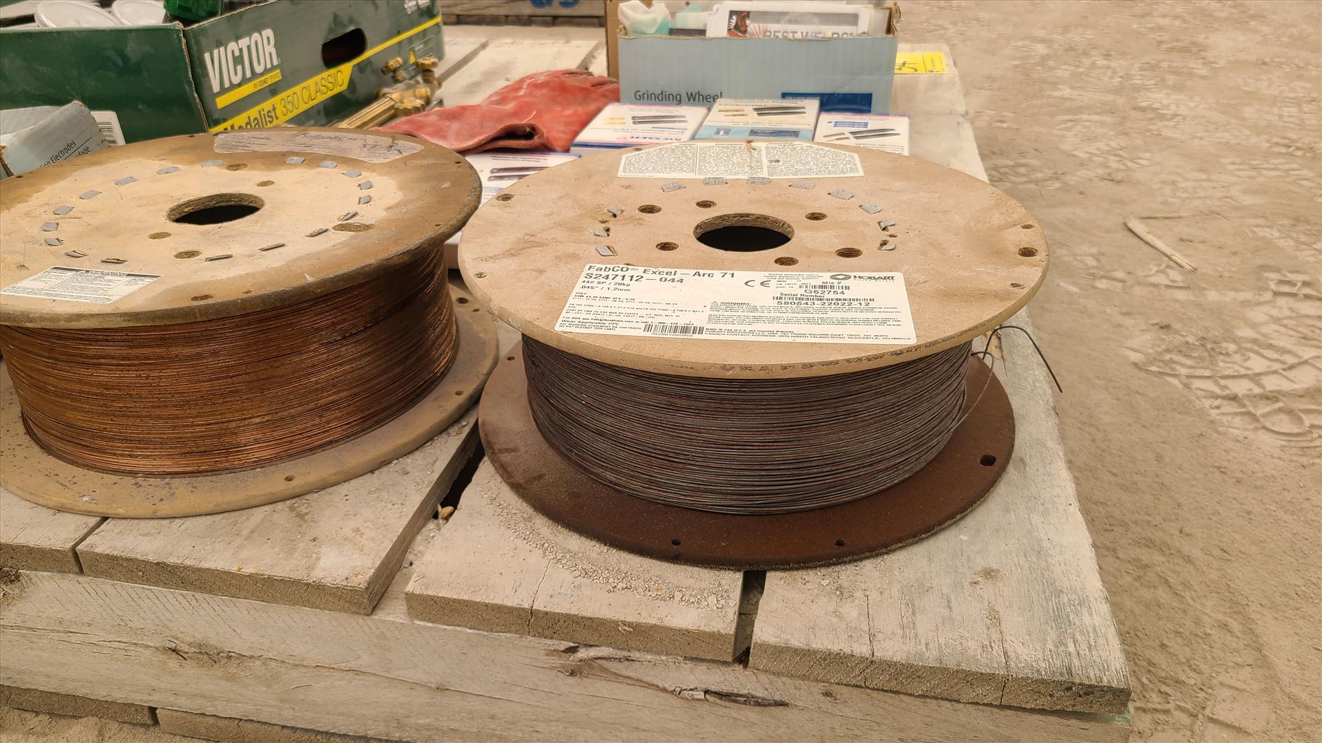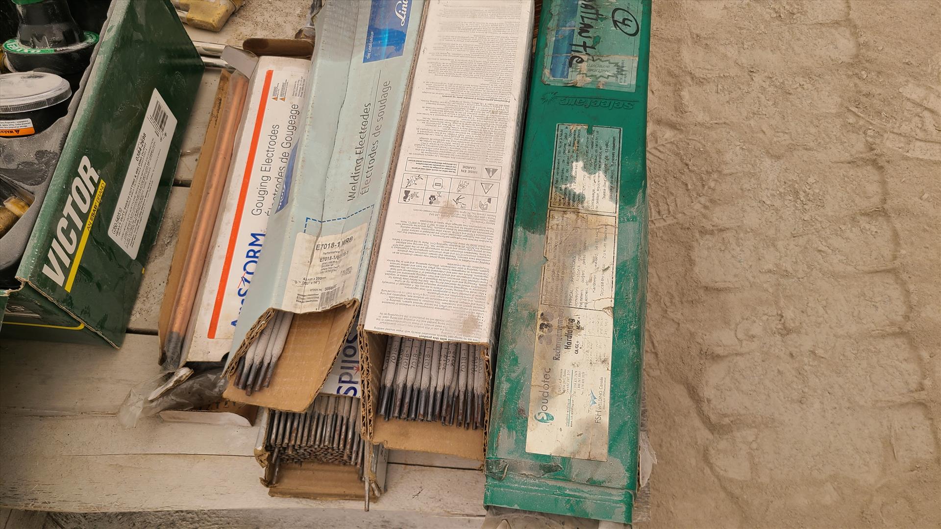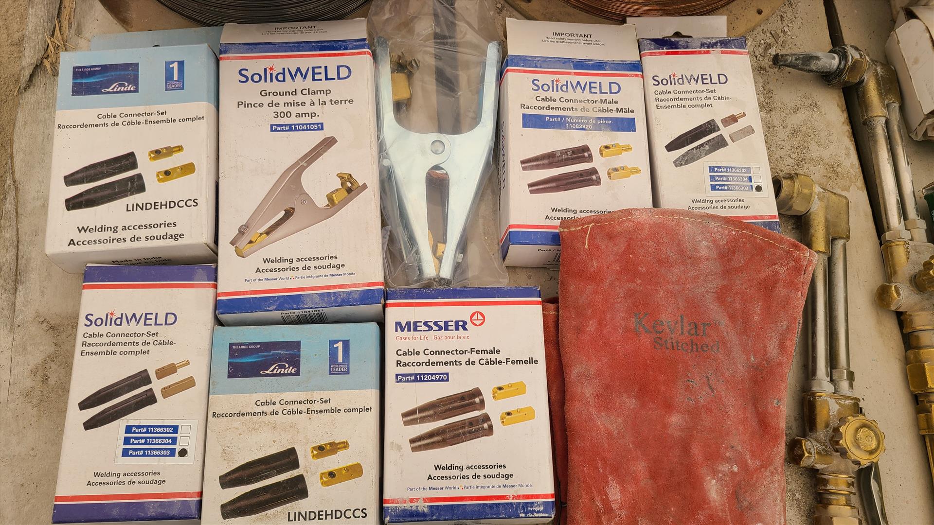 misc. welding accessories, incl.:. welding wire, welding electrodes, ground clamp, cable connectors, victor torch, etc.. [Loc.Hut]