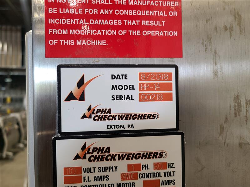 Alpha Checkweigher (High Precision Check Weigher), model HP-14, S/N 00218, 110 volts, 1 phase, 60 Hz (2018)