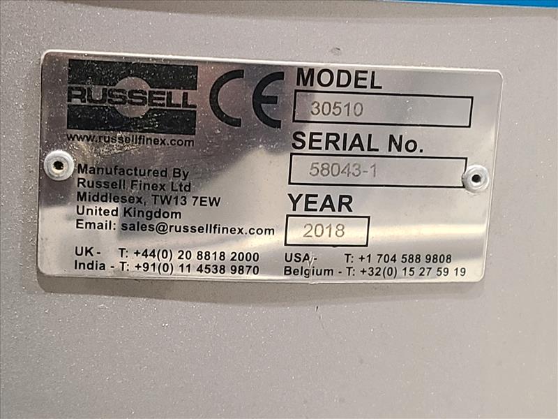 Russell Finex Separator/Sifter, model 30510, S/N 58043-1, w/ (5) decks, stainless steel, cart, and cover