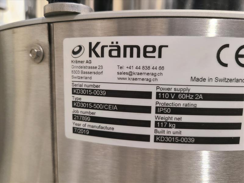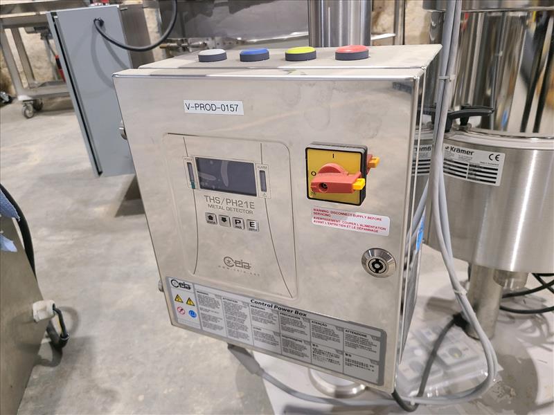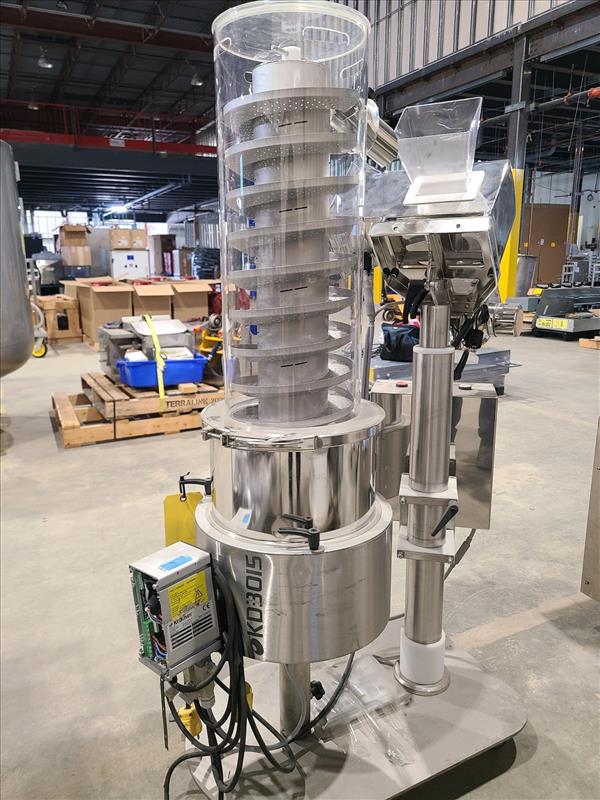 Kramer Tablet Deduster, model KD3015-500/CEIA, S/N KD3015-0039, w/Ceia metal detector, model THS/PH21E, 2 A, 110 Volts, 60Hz , casters (2019)