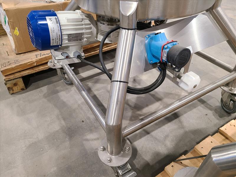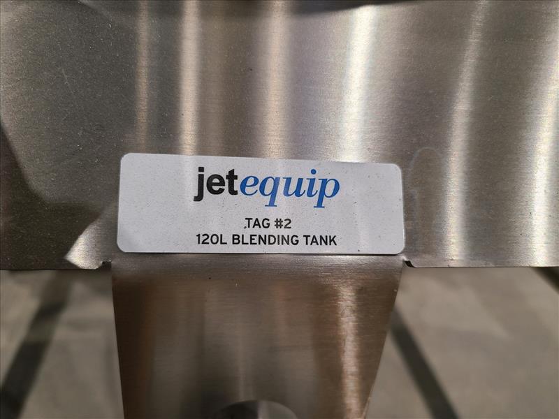 Jetequip Blending Tank, approx. 120L, w/bottom mounted mixer, stainless steel, casters (New, never installed)