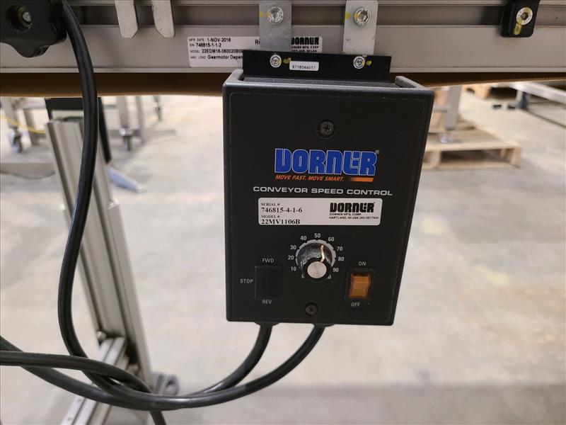 Dorner 2200 Series Conveyor, approx. 70 in. x 16 in., S/N 736815-1-1-2 w/ Dorner Conveyor Speed Control, model 22MV1106B, S/N 746815-4-1-6 (2018)