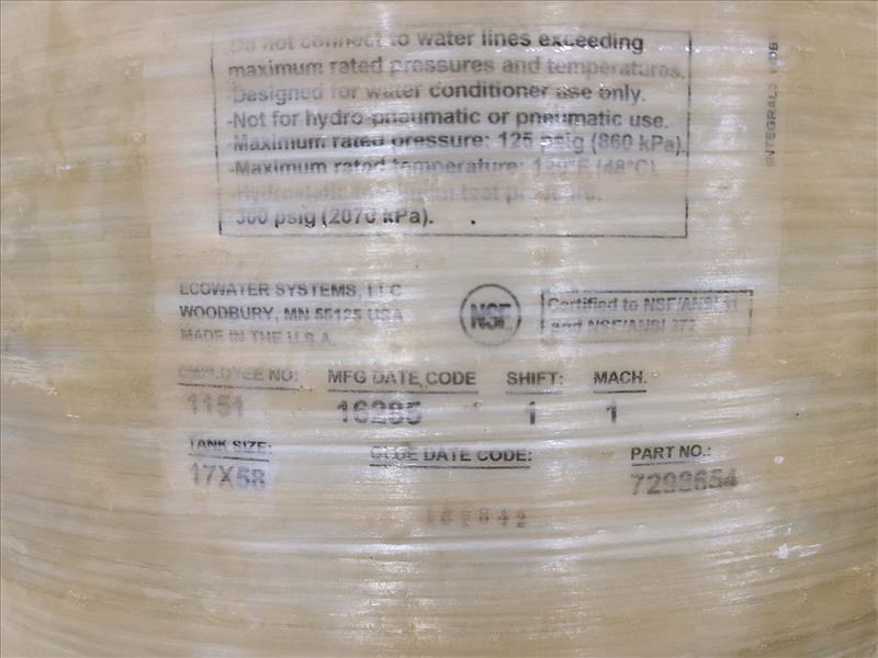 (3) Ecowater Systems Water conditioner carbon tank, size 17X58