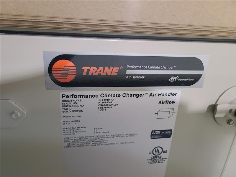 Trane Performance Climate Changer Air Handler Fan Filter, model CSAA006UAL00, S/N K19K88344, (3) build sections, tag id. Fan Filter 6 (New, never installed)