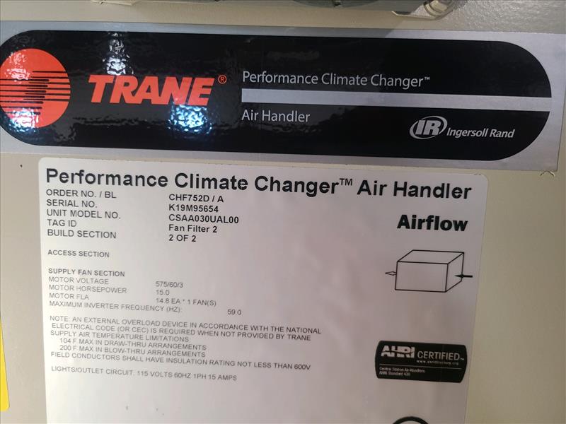 Trane Performance Climate Changer Air Handler Fan Filter, model CSAA030UA00, S/N K19M95654, (2) build sections, tag id. Fan Filter 2 (New, never installed)