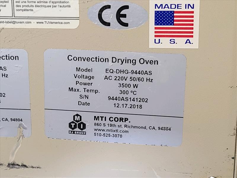 MTI Corp. Convection Drying Oven, model EQ-DHG-9440AS, S/N 9440AS141202, 3500W, 220 Volts, 50-60Hz (2018)