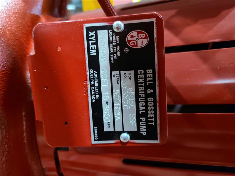 Bell & Gossett Centrifugal Pump, e-80SC Series, model 3X3X7C, S/N 501198A, 15 hp, 3600 rpm, 575 volts, 3 phase, 60 Hz (New, never installed)