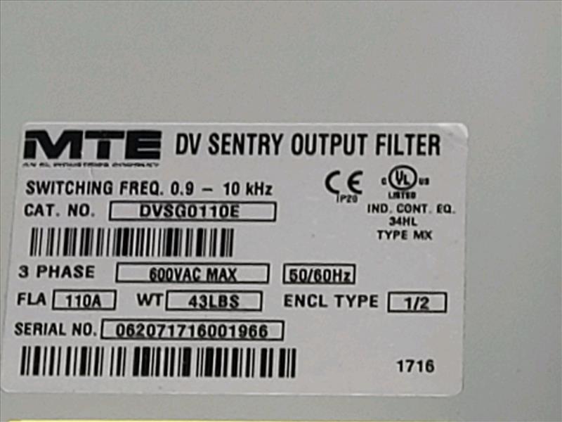 MTE DV Sentry Output Filter, 3 phase, 600 vac max, 50/60 Hz