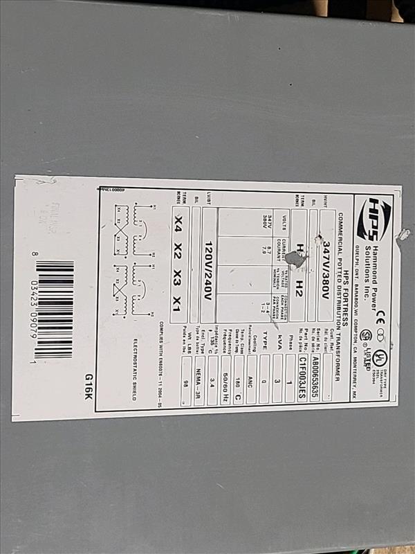 HPS Transformer, 3kvA, model CIF00JES