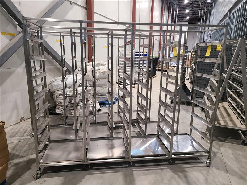 (3) 4 Section Rolling Racks, stainless steel