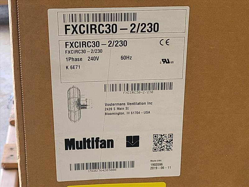 Multifan approx. 30 in. Fan, model FXCIRC30-2/230, 1000 RPM, 2.8A, 240 Volts, 60Hz (2019) (New)