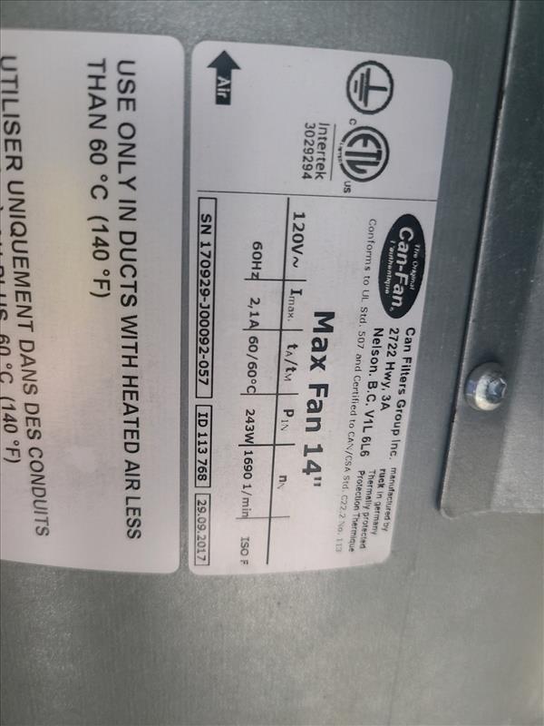 (2) Can-Filters MAX-FAN 14 in. Fans w/ Filters, 243W, 120 Volts, 60Hz (2017)