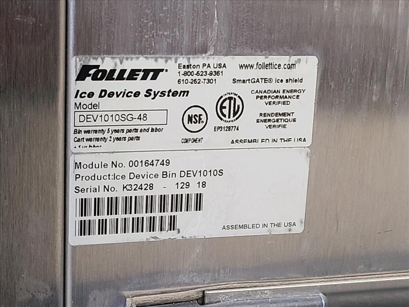Follett Ice Device System Ice Dispenser, model DEV1010SG-48, S/N k32428, w/ Ice-O-Matic