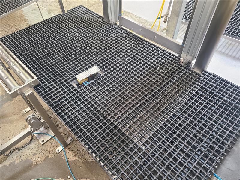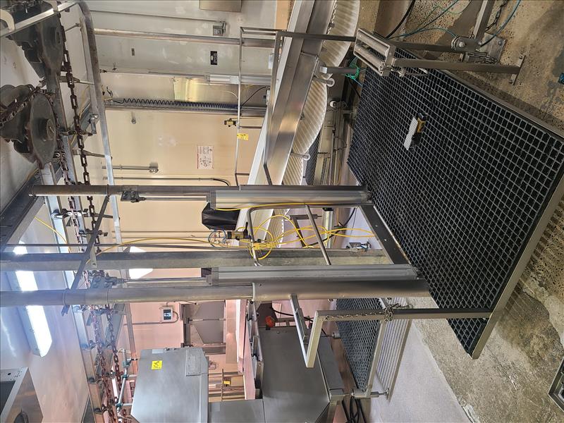 Lacal Technologies Pneumatic Platform Lift, platform approx. 92 in. x 48 in., w/foot pedal switch, stainless steel frame [Loc. Boning Department]