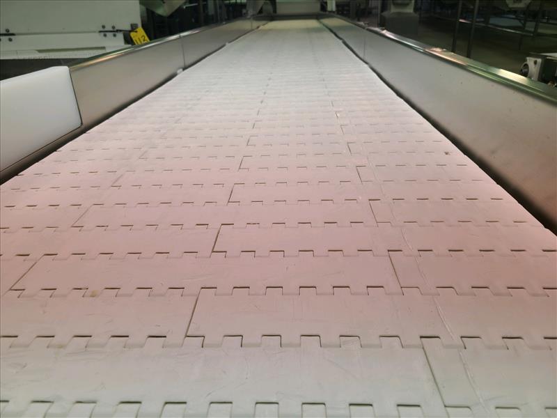 Belt Conveyor, approx. 26 ft. 5 in. x 24 in., stainless steel frame [Loc. Packaging Department]