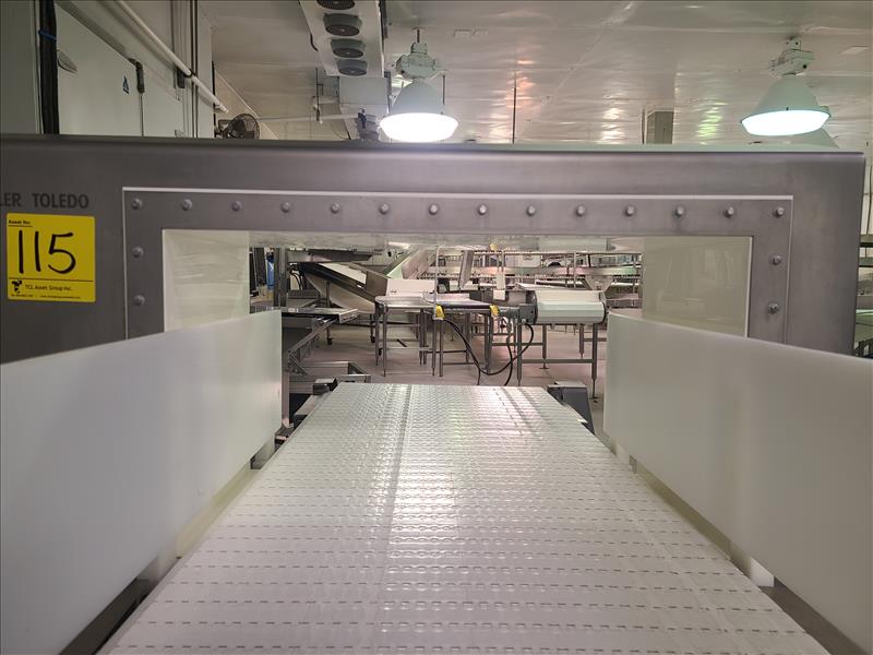 Motorized Belt Conveyor, approx. 5 ft. 10 in x 24 in., 0.75 hp motor, w/ Mettler Toledo Metal Detector, opening dimensions, approx. 16 in. x 27.5 in., top of belt conveyor to top of metal detector approx. 14 in. high, casters [Loc. Packaging Department]\n\n