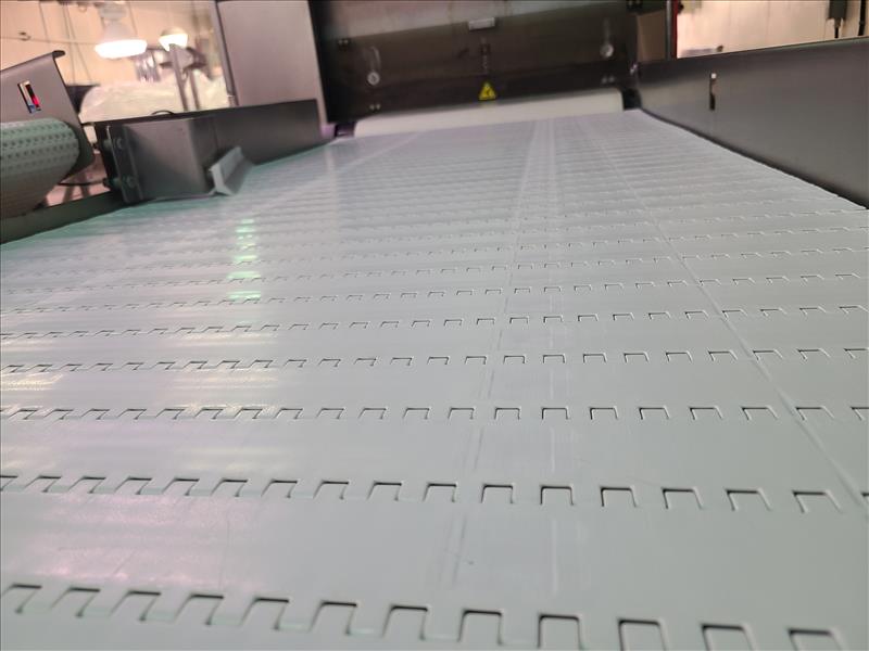 Frontmatec Belt Conveyor, approx. 108 in. x 32 in., stainless steel frame [Loc. Packaging Department]