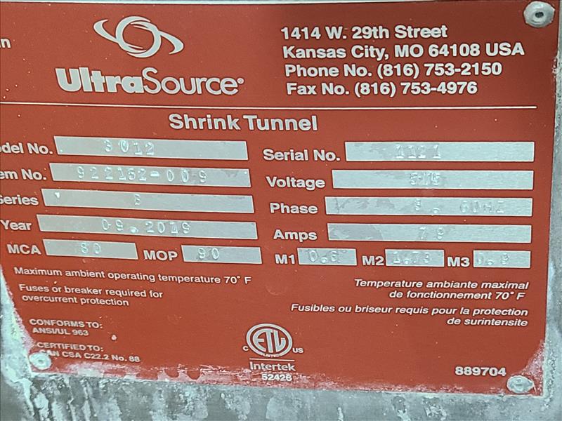 Ultra Source Shrink Tunnel, model 3012, S/N 1121, 575 volts, 3 phase, 60 Hz (2019) [Loc. Packaging Department]