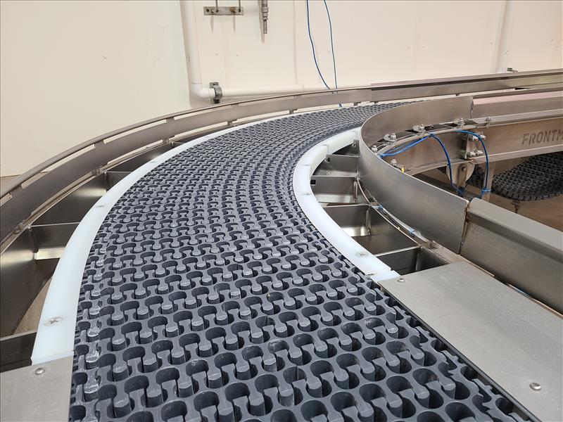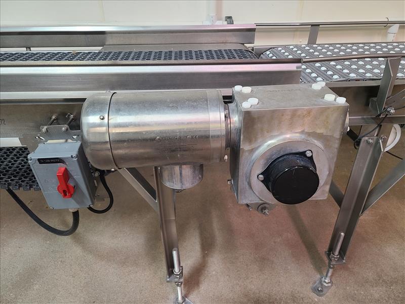 Frontmatec 45 degree turn Belt Conveyor, approx. 12 ft. x 11.5 in., 1.5 hp, motorized, stainless steel frame [Loc. Packaging Department]