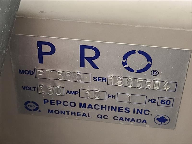 Pepco Machines Vacuum Tumbler, model PT500, S/N 1905904, 230 volts, 10 A, 1 phase, 60Hz [Loc. Behind Packaging]