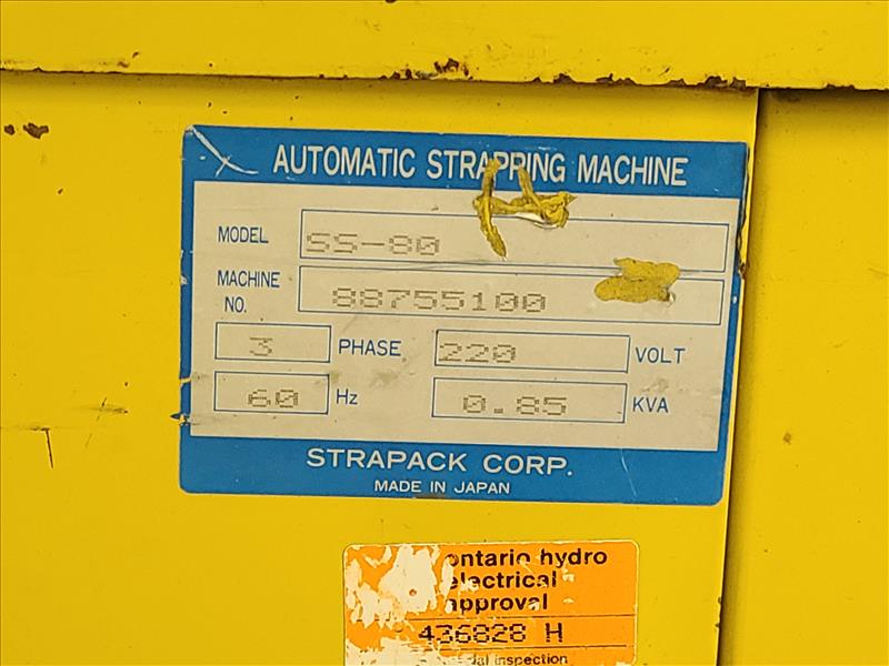 Strapack Automatic Strapping Machine, model SS-80, S/N 88755100, 220 volts, 3 phase, 60Hz [Loc. Shipping/Receiving]