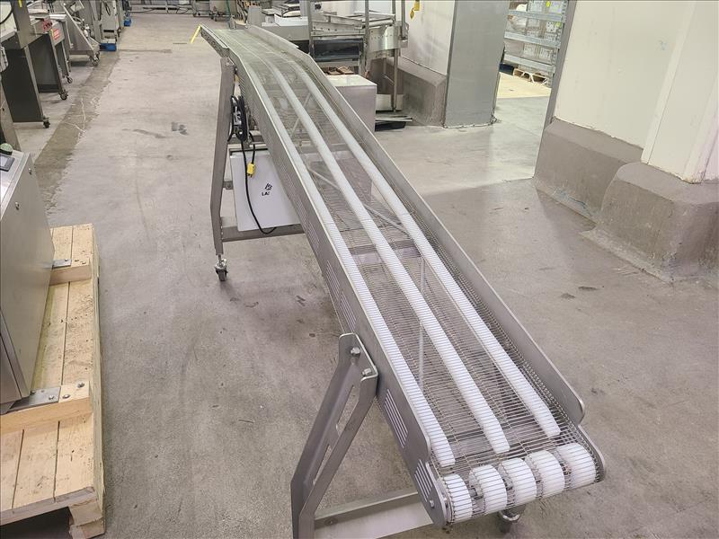 Lacal Incline Mesh Belt Conveyor, approx. 160 in. x 12 in., motorized, casters, steel frame [Loc. Behind Packaging]