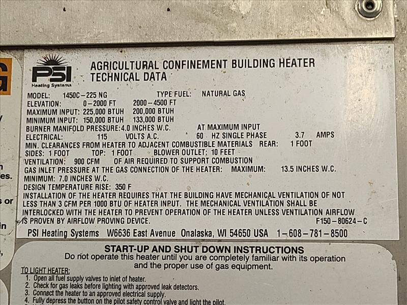 (2) PSI Heating Systems Building Heater, model 1450C-225NG [Loc. Shipping/Receiving]