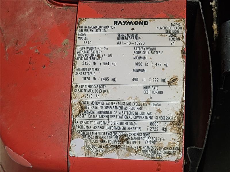 Raymond Electric Pallet Jack, model 8310, S/N 831-13-10273, 6000 lbs. capacity [Loc. Shipping/Receiving]