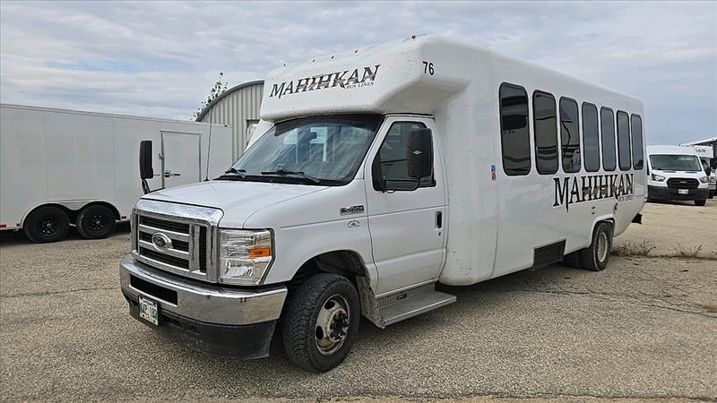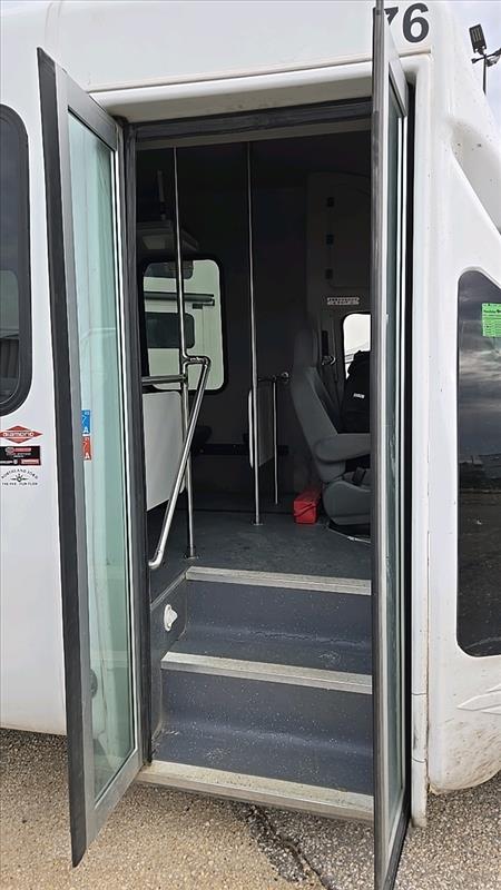 (2021) Ford Econoline SD Cutaway Shuttle Bus, model E-450, 8 cylinder,? 24 seats, washroom, Gas engine, washroom, Back up camera, Bus number 76, VIN 1FDFE4FN0MDC07486, 270652 KM, as-is-where-is, Cracked windshield, Current safety expired Aug 2024
