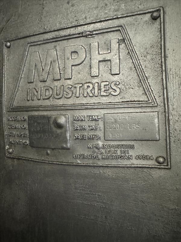 MPH Industries gas fired reverb melting/holding furnace 5200 lbs. capacity w/ dip well, combustion Tech controls, high velocity burners, 1000 lbs. per hour melt rate, relined w/in the last year [Loc. Plant]