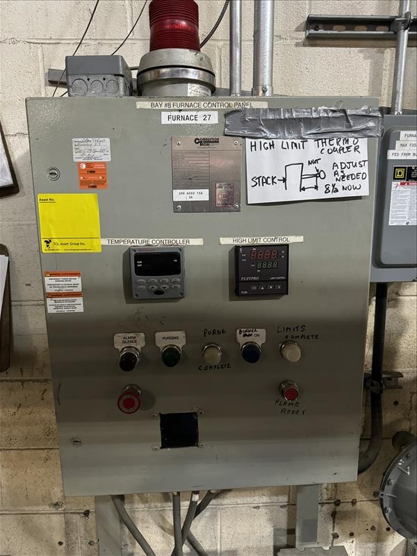 gas fired reverb melting/holding furnace 5200 lbs. capacity w/ dip well, combustion Tech controls, high velocity burners, 1000 lbs. per hour melt rate, relined w/in the last year [Loc. Plant]
