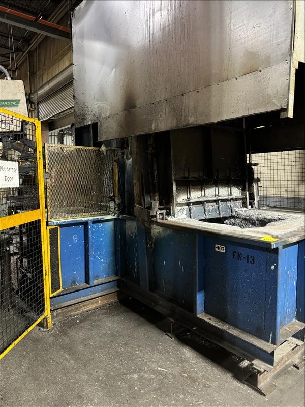 Gasmac model GNH-500 aluminum melting/holding furnace s/n JW990711, 6500 lbs. capacity, 600 lbs. per hour melt rate [Loc. Plant]