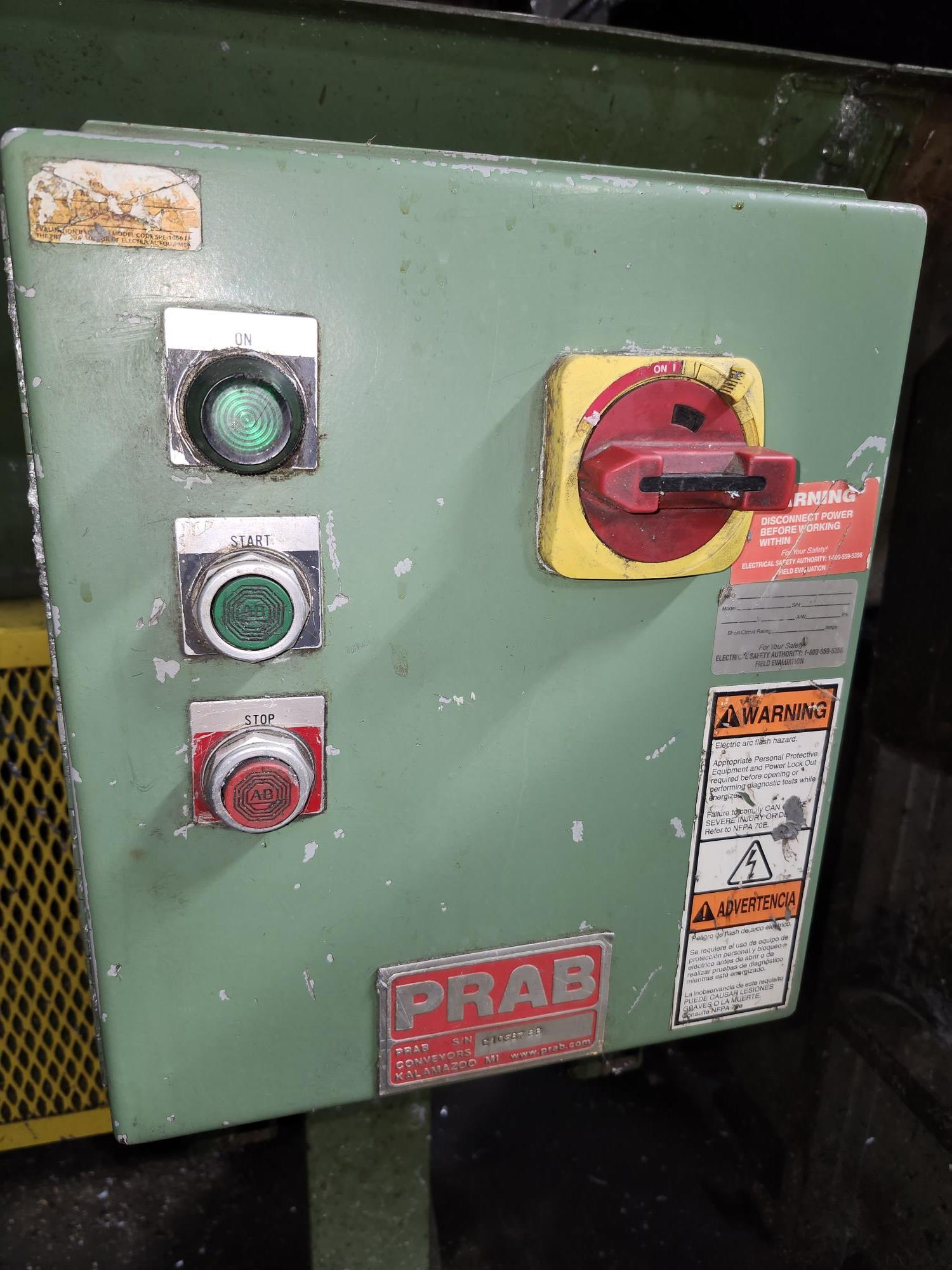 Prab charge feeder, approx. 50/36\" x 10' long x 12\" deep w/ drive and controls [Loc. Plant]