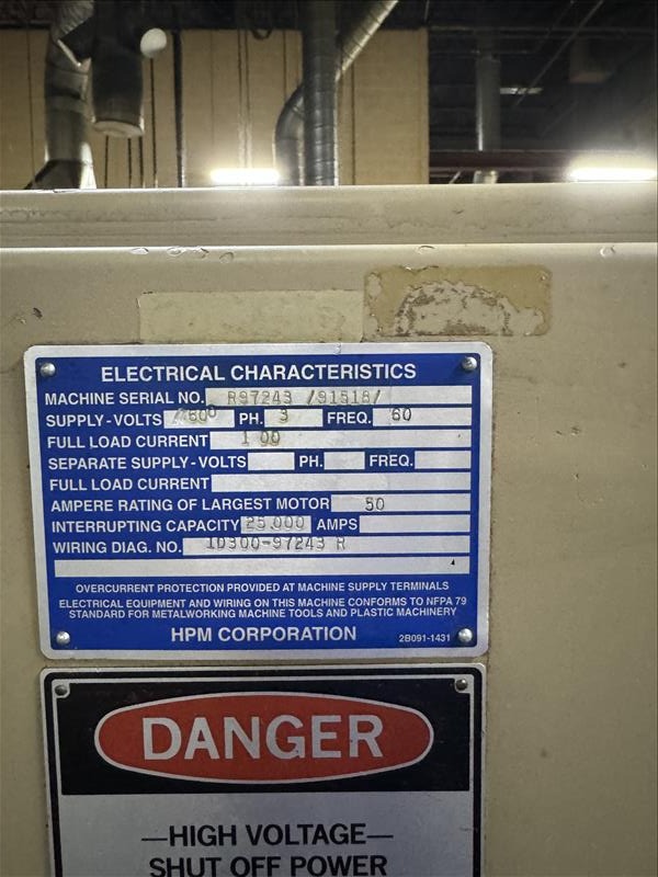 HPM model II-400-Z 400 ton hot chamber die cast machine s/n R97243/9151 w/ FN-2 furnace spray system and plc controls [Loc. Plant]