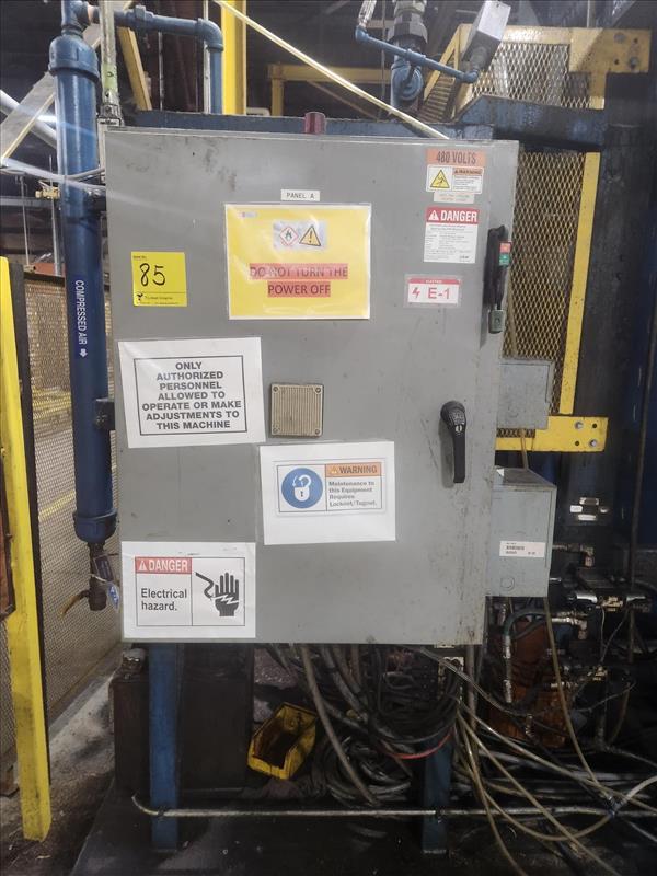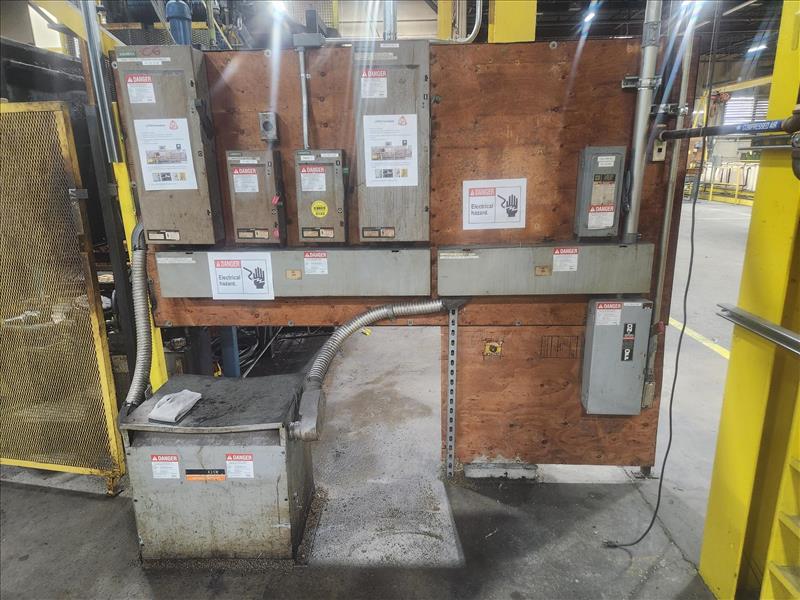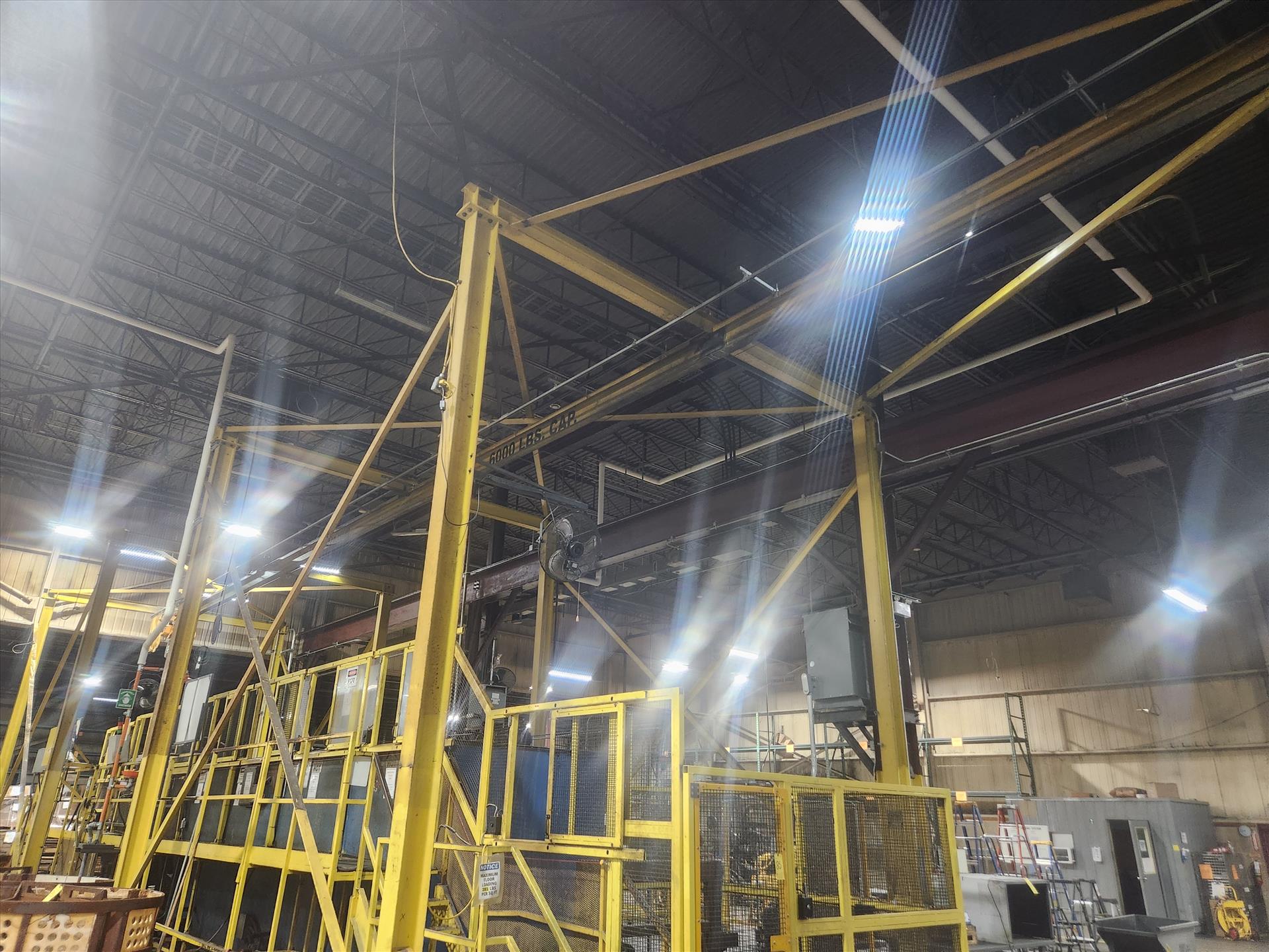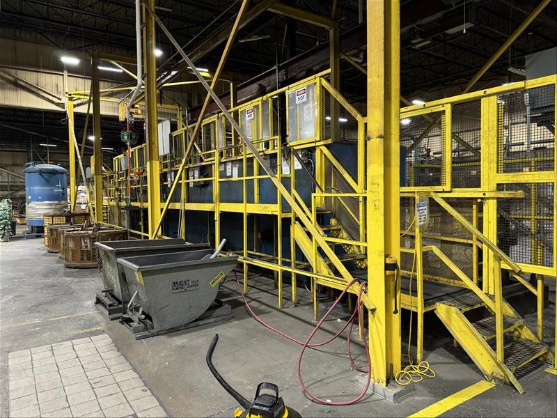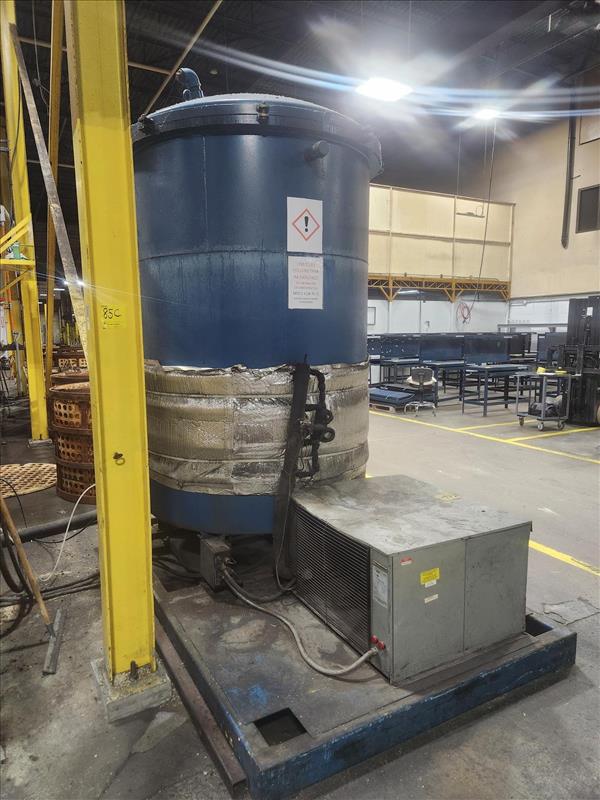 casting impregnation system to include im 3000 resin vacuum tank, 5200 liter wash tank 71\" x 71\" x 71\" deep, 2000 liter rinse tank 71\" x 71\" x 41\" deep, 5200 liter cure tank 72\" x 71\" x 90\" deep, 5200 liter cure tank 71\" x 71\" x 71\" deep, pumps, controls, overhead hoist system w/ (2) Kito 2-ton and 1-ton electric chain hoists w/ electric trolleys c/w Magna-Tech/TechnaSeal self-supported bridge, 6000 lbs. cap., approx. 75 ft. spa, enclosures, stairs and platforms, (8) baskets, 500 gallon holding tank w/ chiller, controls w/ Allen Bradley Mricologic 1200 plc, pumps and motors, transformer (Impregnation Line)